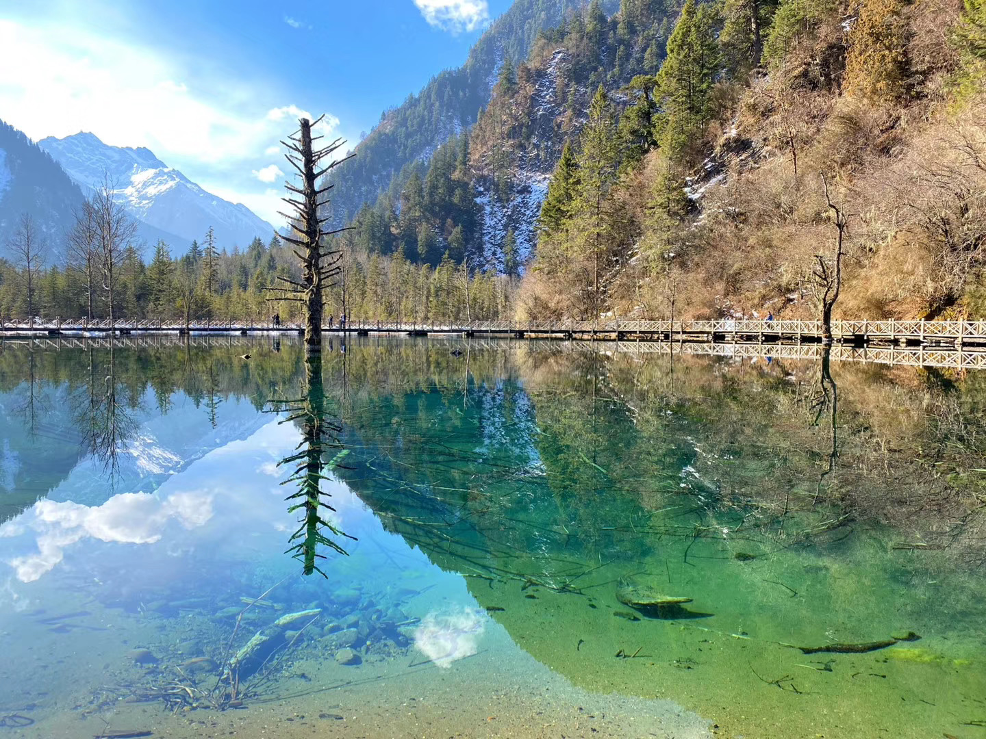 龍王海(hǎi)翡翠般絢爛,湖(hú)中倒映著(zhe)藍(lán)天白(↑Ωβbái)雲。岸邊山(shān)巒中的(de)樹(shù)木(mù)郁郁₹γΩ蔥蔥,高(gāo)大(dà)挺拔,矗立成一(yī)座座森(sēn)π≈€'林(lín)。