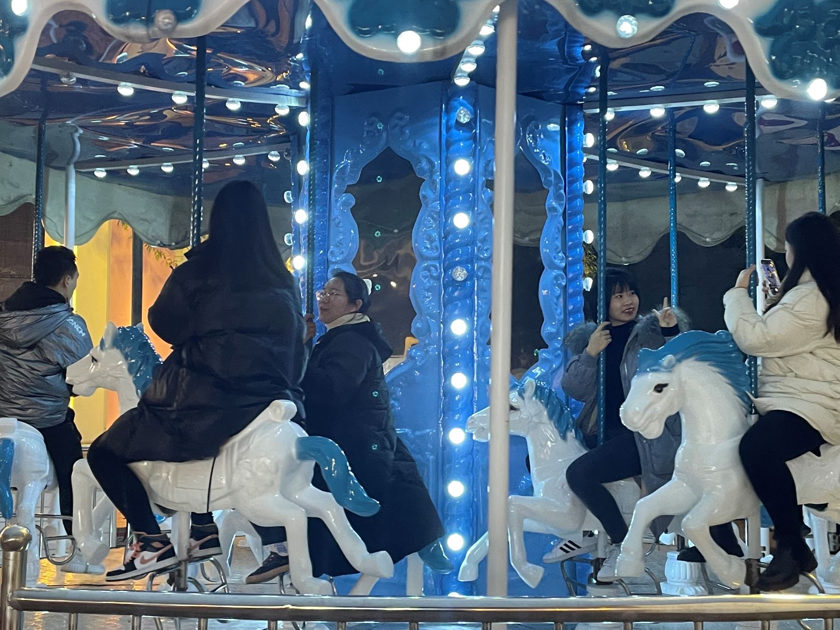 乘坐(zuò)旋轉木(mù)馬的(de)夥伴們