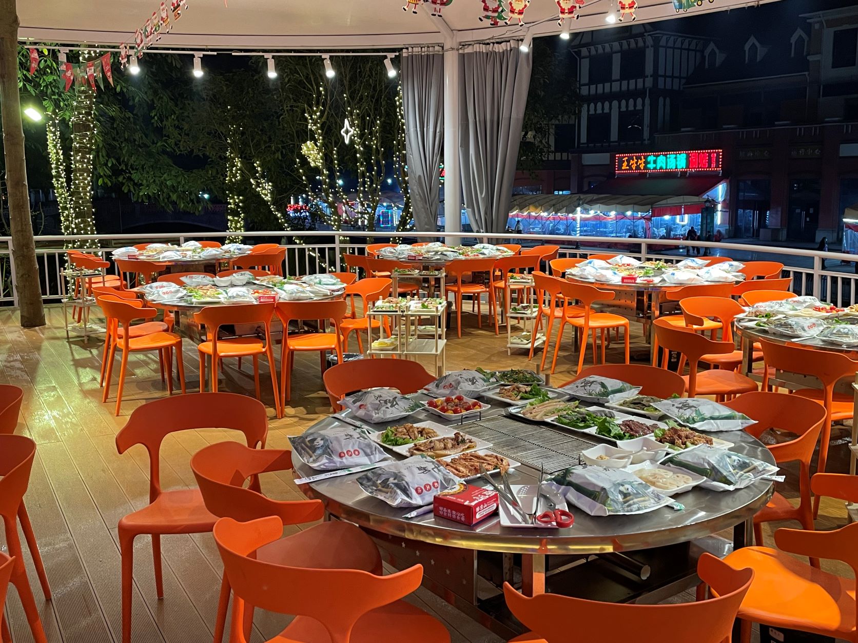 晚上(shàng)是(shì)壩壩宴,旁邊還(hái)有(yǒu)旋轉木(mù)÷>馬,一(yī)群童心未泯的(de)夥伴們趁著(zhe)≠<←&等菜的(de)間(jiān)隙,還(hái)聽(tīng)著 >♣(zhe)兒(ér)歌(gē)坐(zuò)上(shàng)了≈₽®'(le)幾圈,好(hǎo)不(bù)歡樂(yuè)!δ♦γ